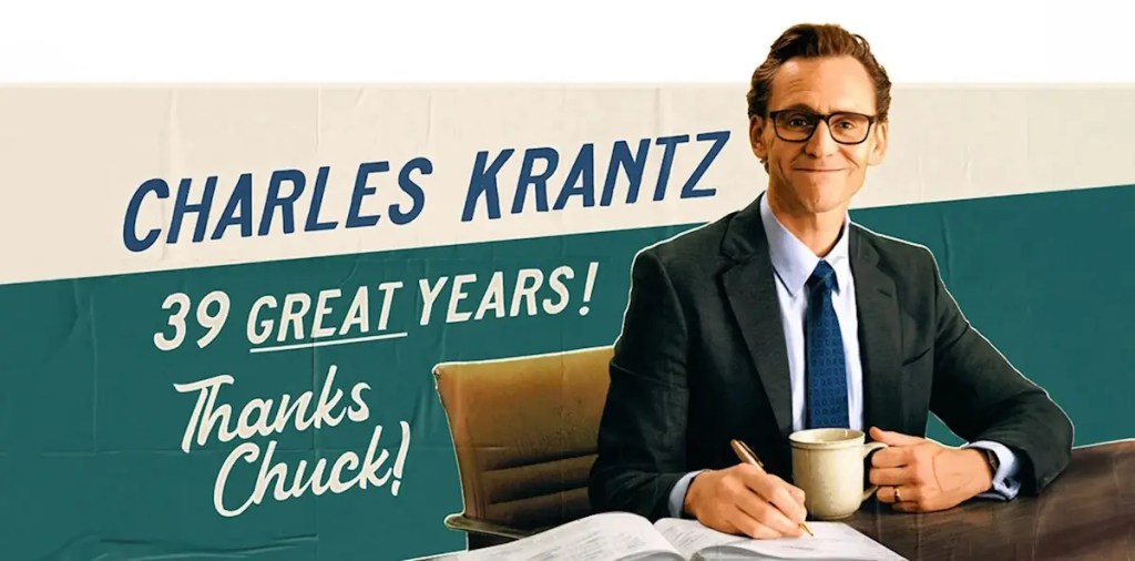 En la pelicula aparece un elemento. Hay un cartel que resume su vida: “39 great years. Thanks, Chuck.”